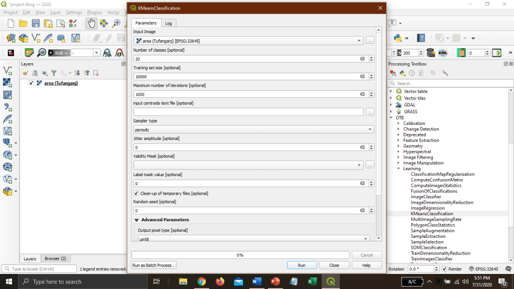 Unsupervised classification using KMeansClassification in QGIS