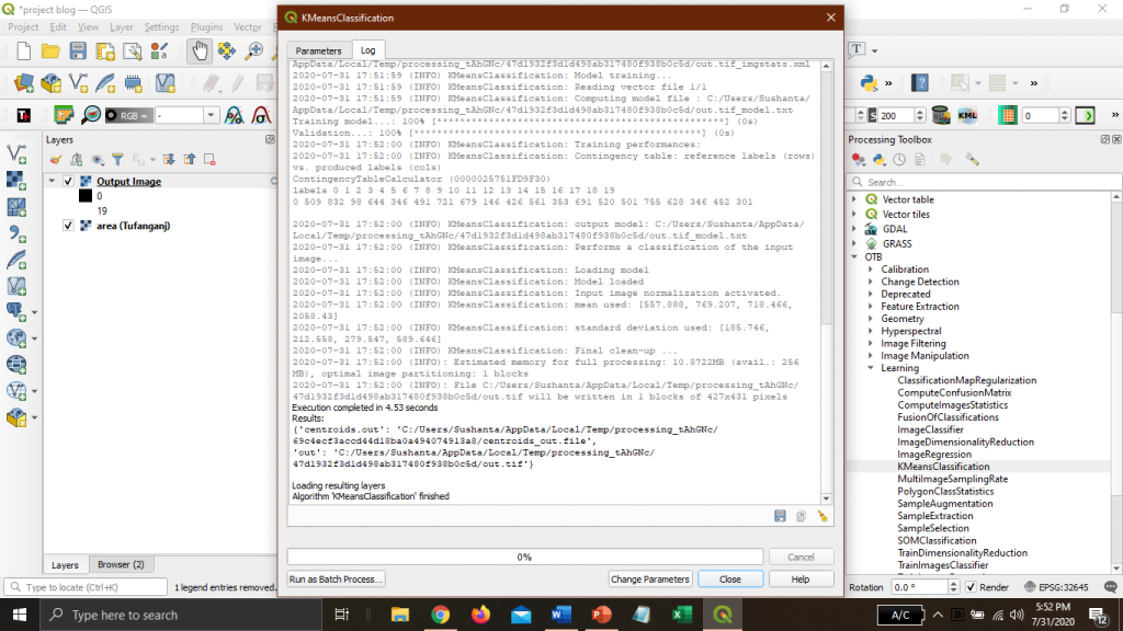 Finally, we did Unsupervised Classification using KMeansClassification in QGIS. If you face any problem regarding this, comment below. Raster image and output file download links are also available. You can download it from here.